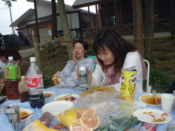 ゴールデンウィークにもかかわらずよく集まりました。(家族を捨てた暇人??) 朝8時に駐車場が満杯で入れないというのに、初登場の純ちゃん管理人さんにお色気?で頼んで11時でも乱入です。ラッキーな日でした。 メニューは、昔の若者らしく? 肉は少なめに、’おやき’と豚汁?(もどき)まあまあ、飲んで食べて恒例の温泉でした。